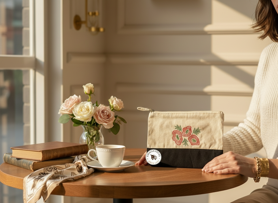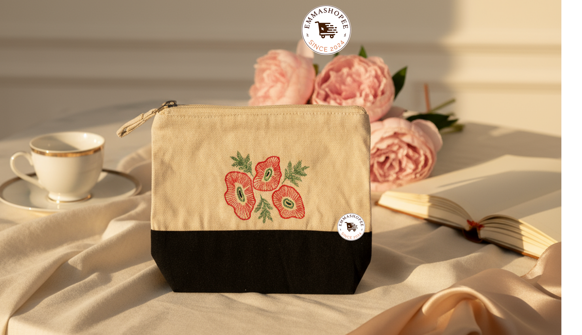 This "Red Poppy" canvas pouch features a contemporary design with a vibrant red poppy. Made with 100% cotton and a durable zipper, it is both stylish and functional. Perfect for organizing and protecting your essentials, while adding a touch of charm to your everyday routine.